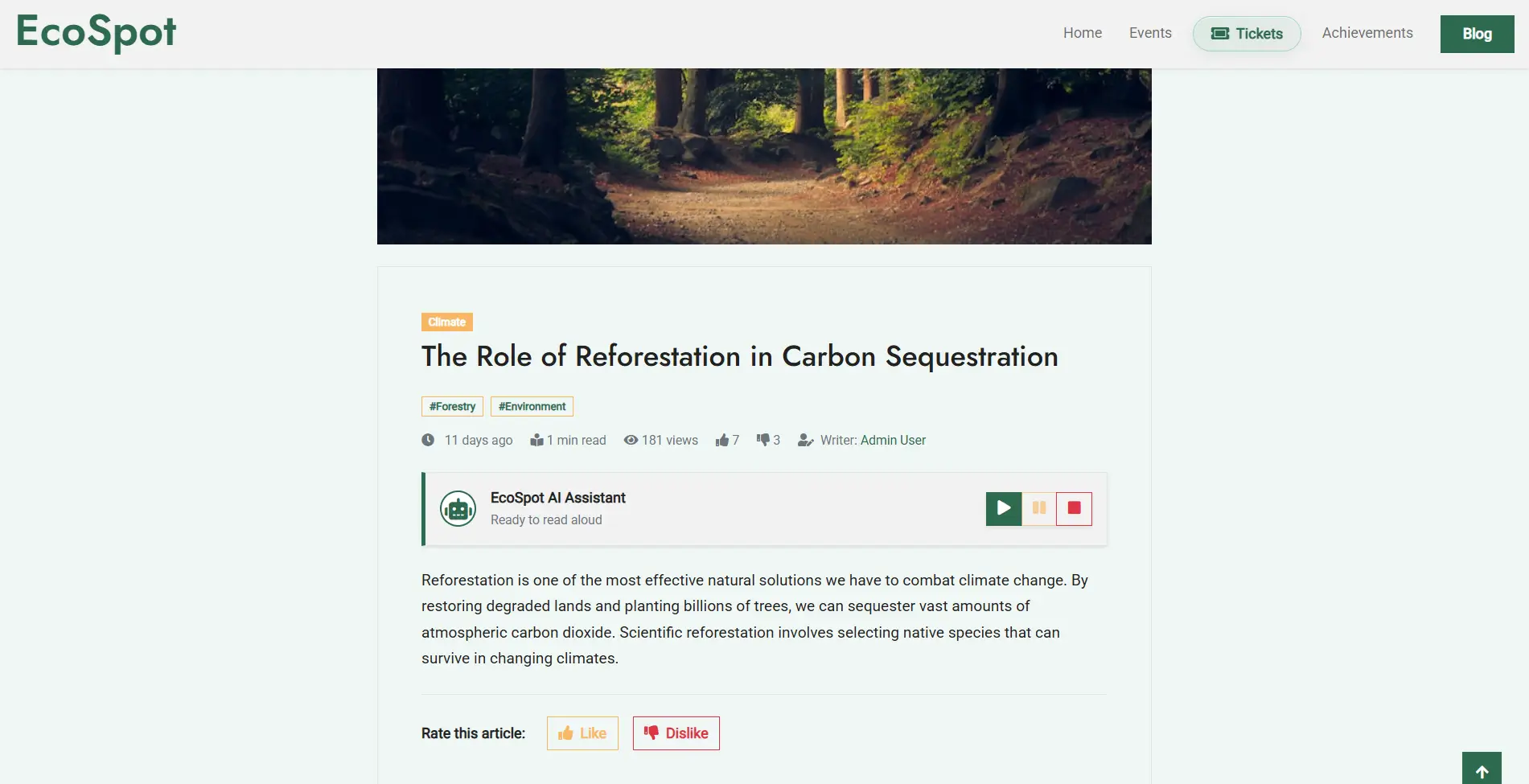 By centralizing these elements, EcoSpot provide a comprehensive environment where users can monitor ecological trends, engage with NGO initiatives, and stay informed through credible local research.